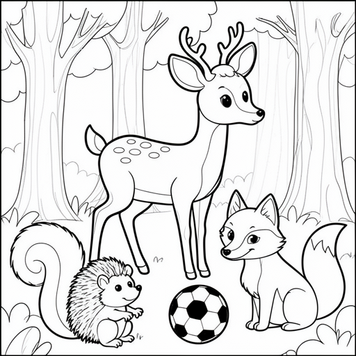 hert eekhoorn egel bos vos voetbal kleurplaat voor kinderen