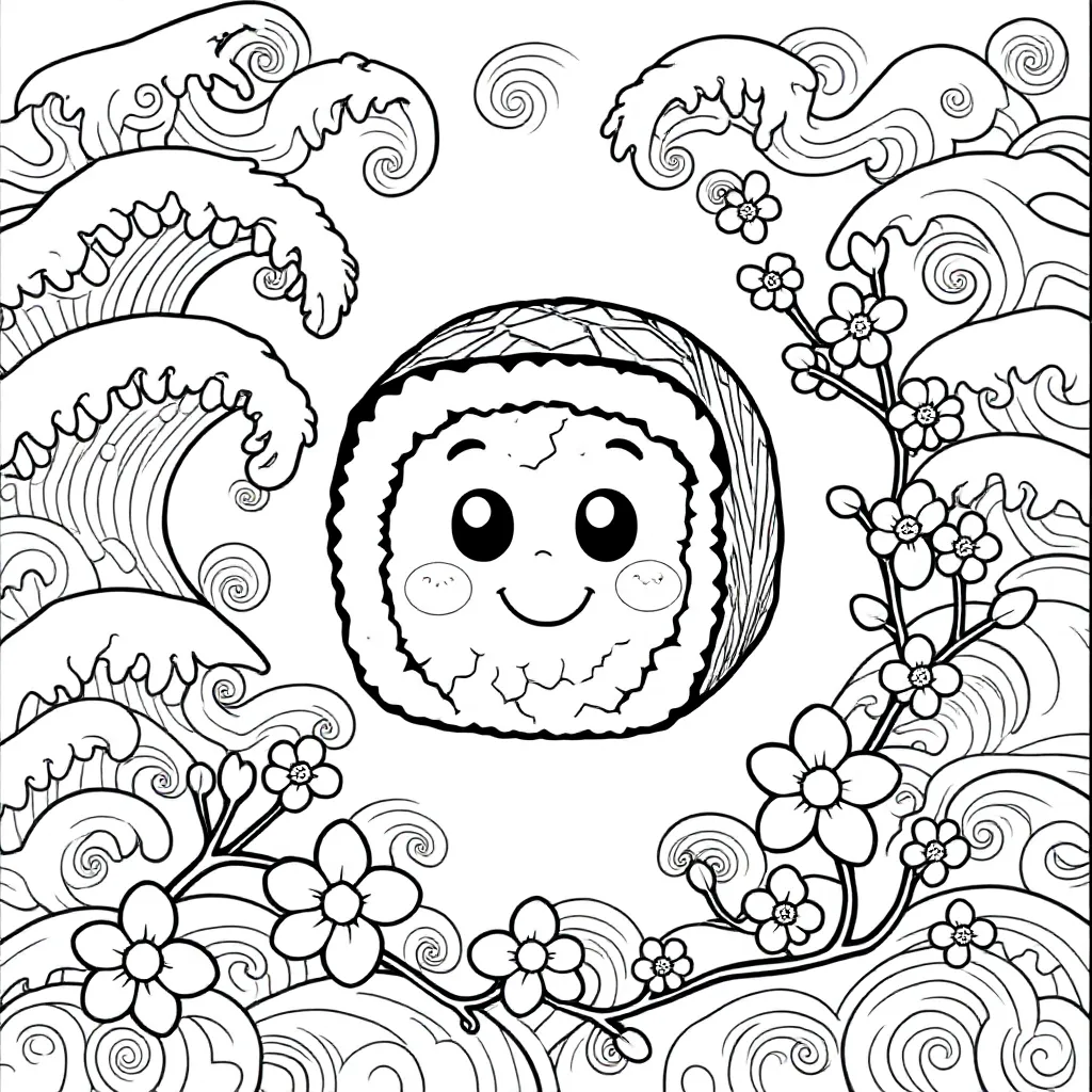 This super fun detailed een sushi met een gezichtje coloring page from the Sushi theme is perfect for creative children aged 4-8 jaar! ✏️🎨