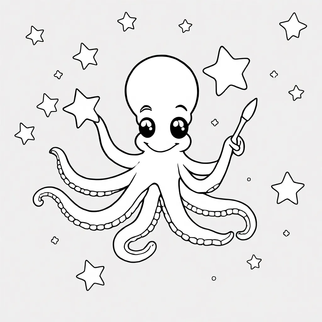 Fun guaranteed with this Vliegende inktvis schildert sterrenstelsels op de nachthemel. coloring page! Start coloring right away! 🌈
