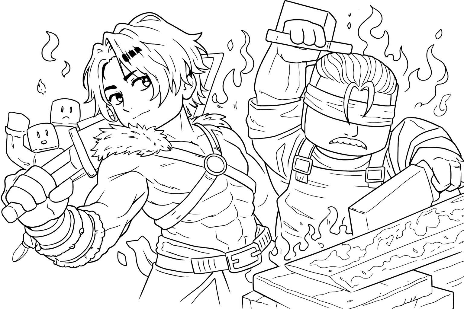 The Forge Roblox kleurplaat - zwart-wit lijntekening