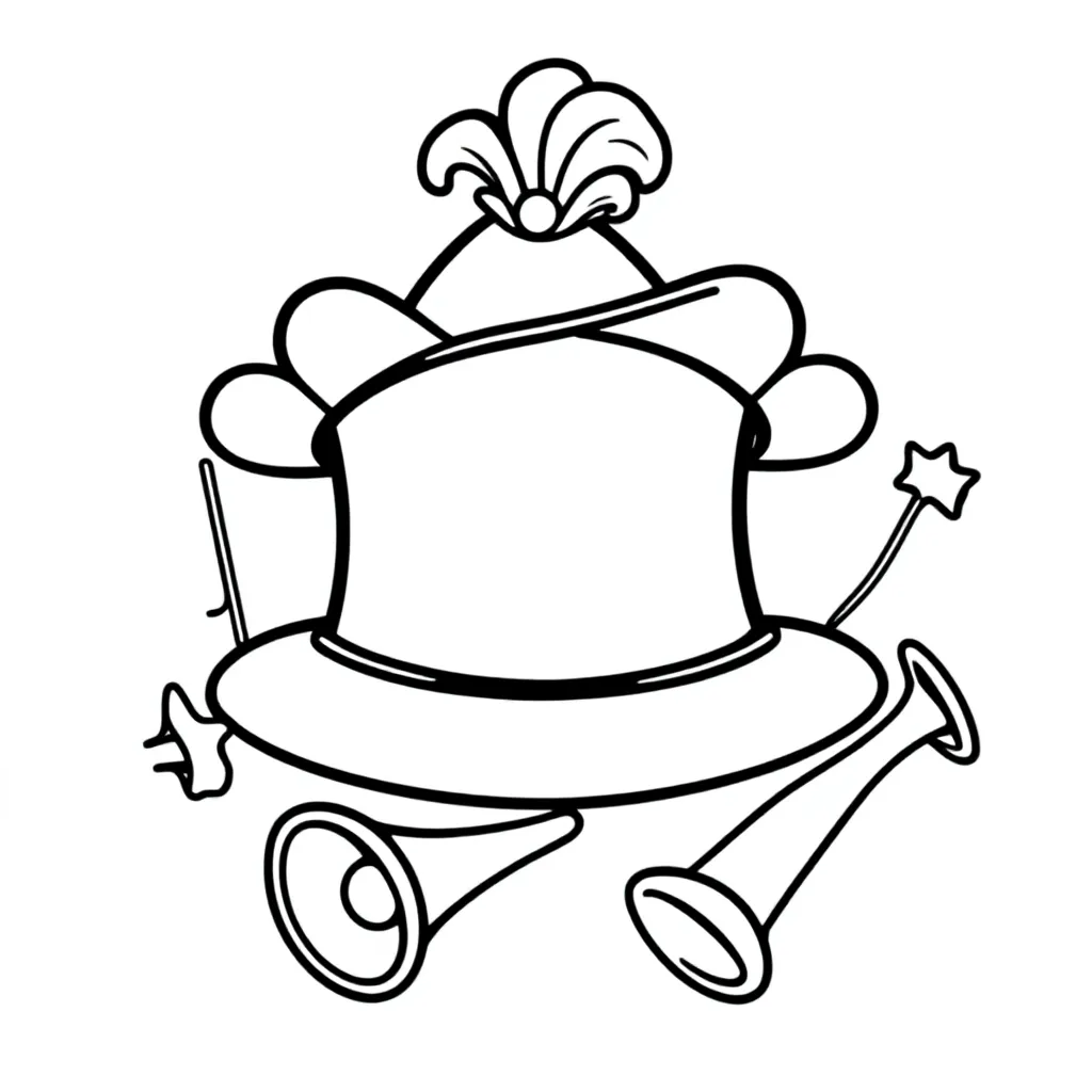 Deze superleuke simpel Kleurplaat met carnavalssteek, feestmuts, serpentines en trompet kleurplaat uit het 6 7 kleurplaat thema is perfect voor creatieve kinderen van 4-8 jaar! ✏️🎨